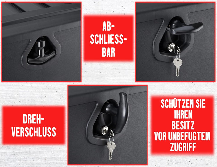 - ✅𝐏𝐫𝐨𝐟𝐞𝐬𝐬𝐢𝐨𝐧𝐞𝐥𝐥𝐞𝐬 𝐀𝐮𝐟𝐭𝐫𝐞𝐭𝐞𝐧 – durch den einhändig bedienbaren TurnLock-Verschluss lässt sich die Box öffnen und das Zubehör kann in Sekundenschnelle verstaut oder entnommen