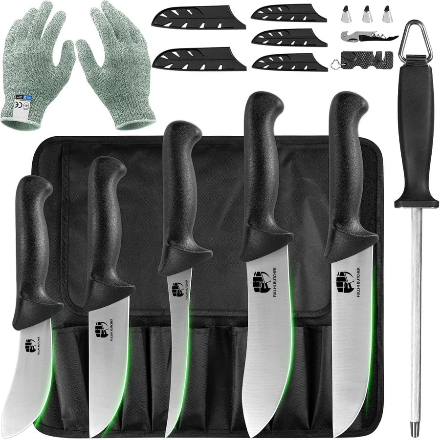 FULLHI 11PCS Metzger Messer Set, Anti-Rutsch-Metzger Ausbeinmesser Edelstahl Kochmesser Set, Fleisch