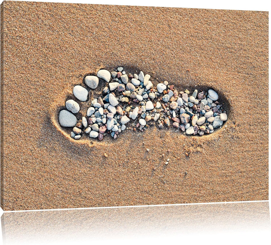Fussabdruck im Sand, Format: 100x70 auf Leinwand, XXL riesige Bilder fertig gerahmt mit Keilrahmen,