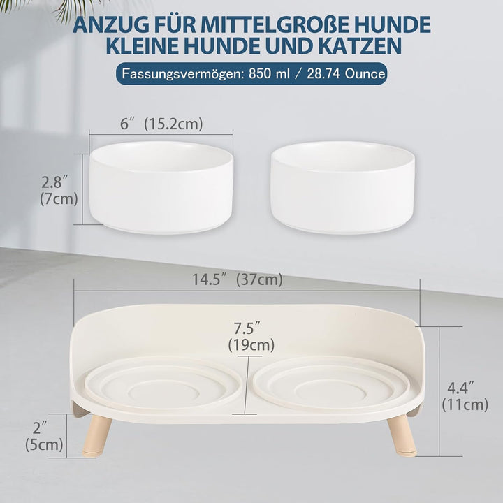 - Doppelnapf Design - 2er set Futternäpfe für hunde, 850 ml für jede Keramikschale, könnte es für einen Tag mit Essen und Wasser reichen, ohne ständig nachfüllen zu müssen. Geeignet für kleine Hunde, mittelgrosse Hunde und grosse Katzen.