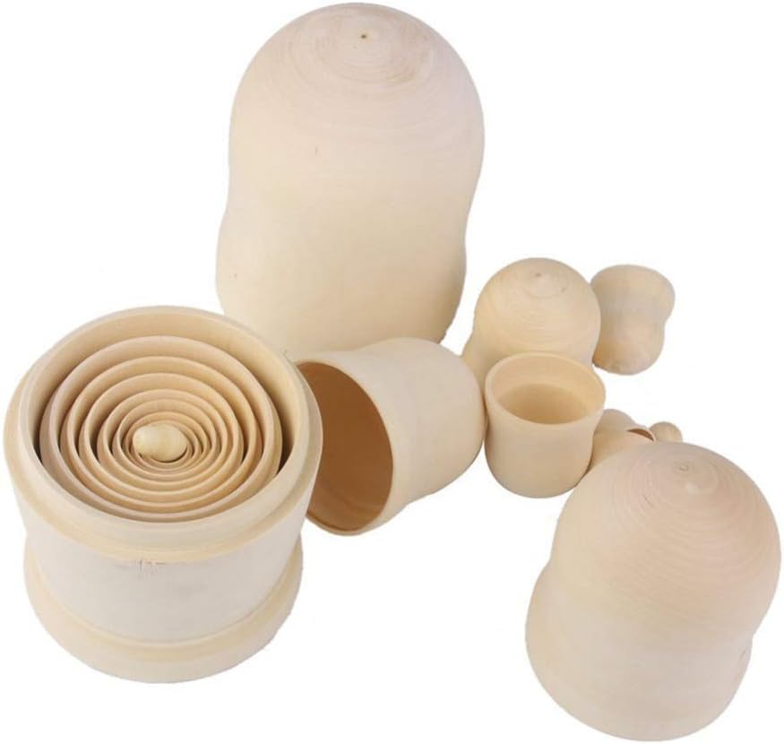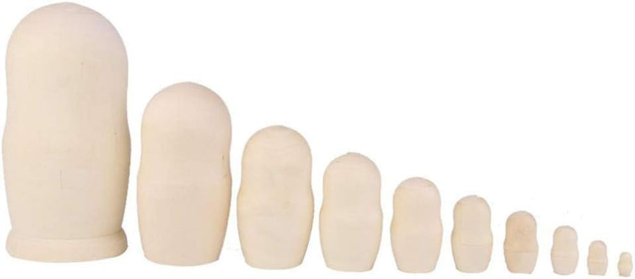 - :) 10 Stück Holzpuppen mit abnehmender Grösse ineinander gelegt.