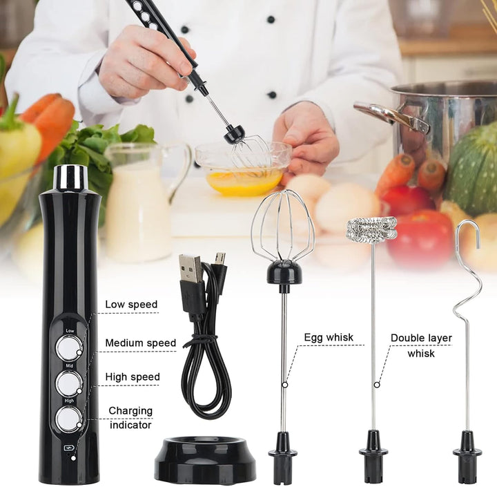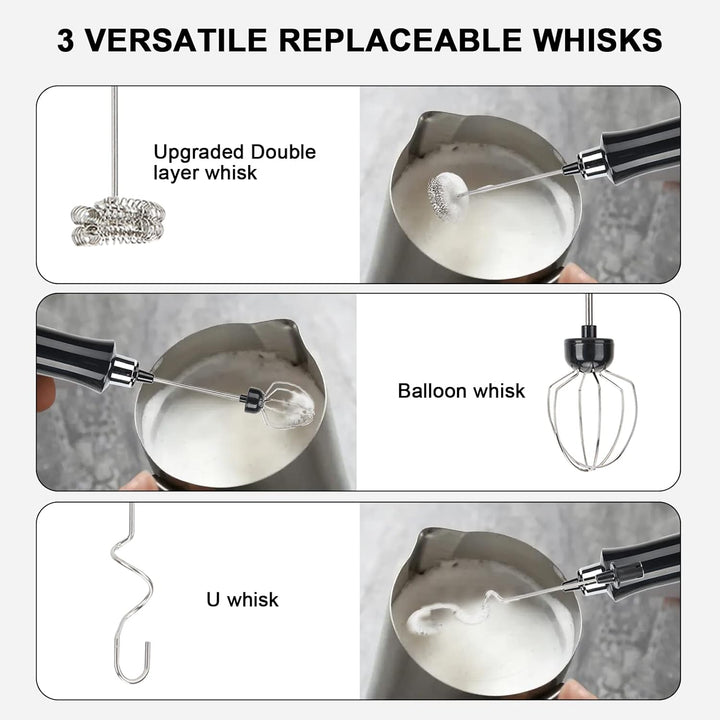 - MULTIFUNKTIONAL MILK FROTHER: Der Aufschäumer kommt mit Aufsätzen, die leicht aufzuwechseln sind. Die Aufsätze lassen sich leicht auf das Gerät aufschieben und entfernen. Wählen Sie den kleinen Schneebesen, um den perfekten Milchschaum zu erhalten.