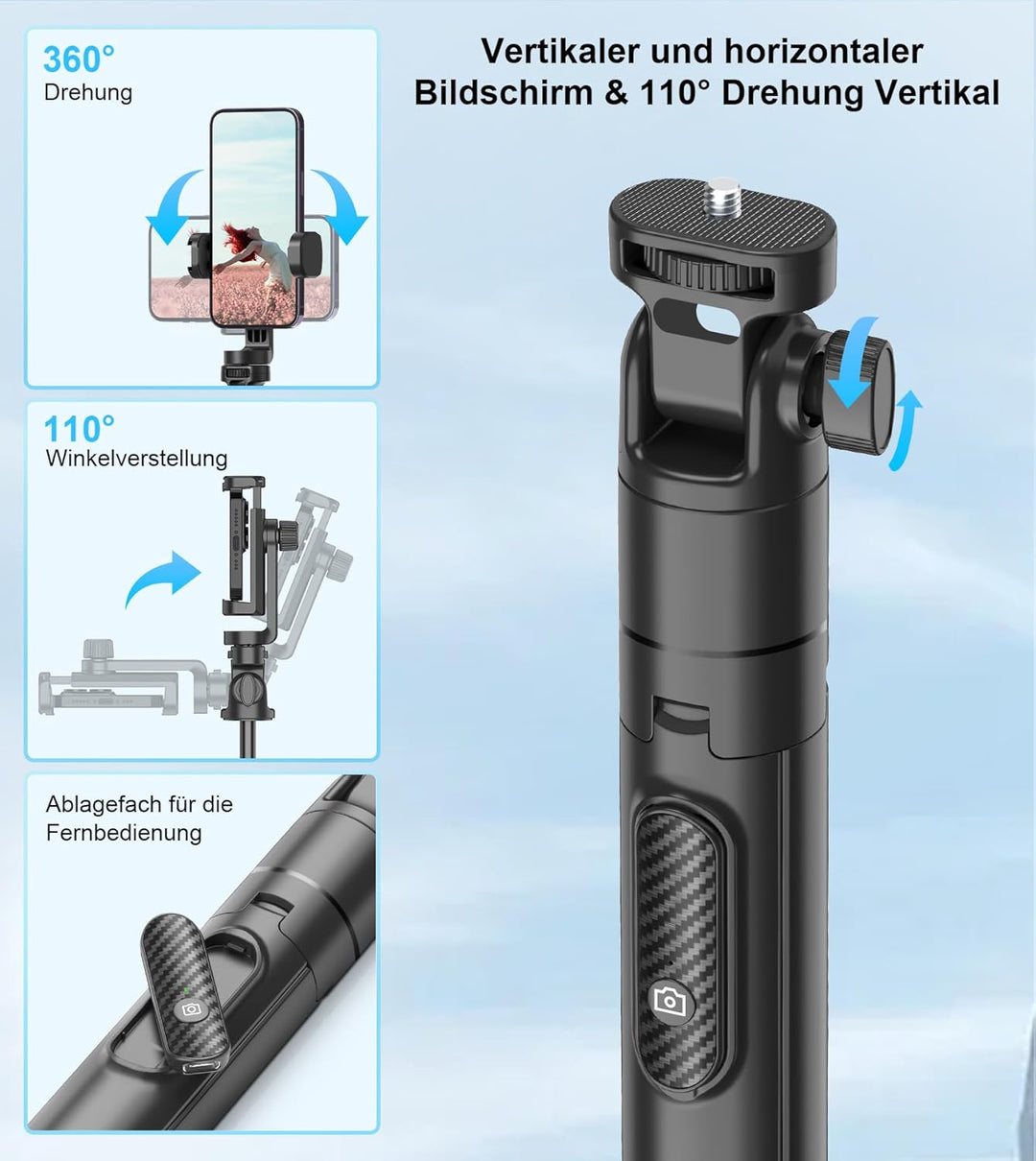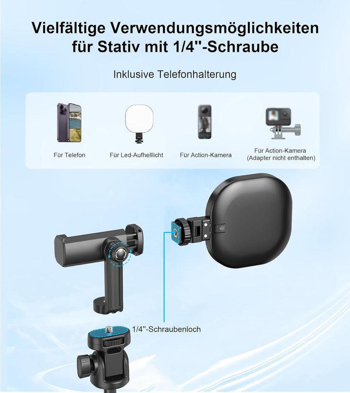 - Robuste & Lange Batterielebensdauer : Das Smartphone-Stativ nimmt verstellbare 7-teilige Aluminiumlegierungs-Teleskopstange und vergrösserte verstärkte Stativbasis an, um die Stabilität zu halten und sicherzustellen, dass das camera-Stativ in