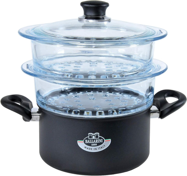 • Aluminium-Topf mit zwei Glaseinsätzen