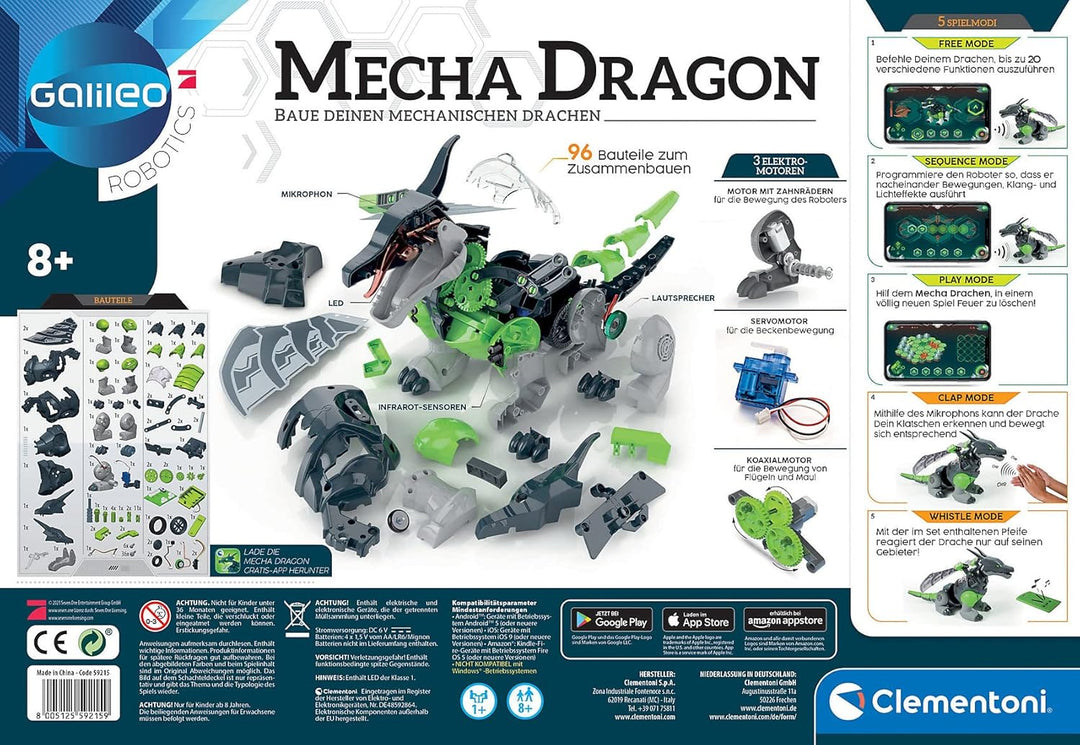 - Lieferumfang: 1 x Galileo Robotics Mecha Dragon, Robotik zum Selberbauen für Kinder ab 8 Jahren von Clementoni