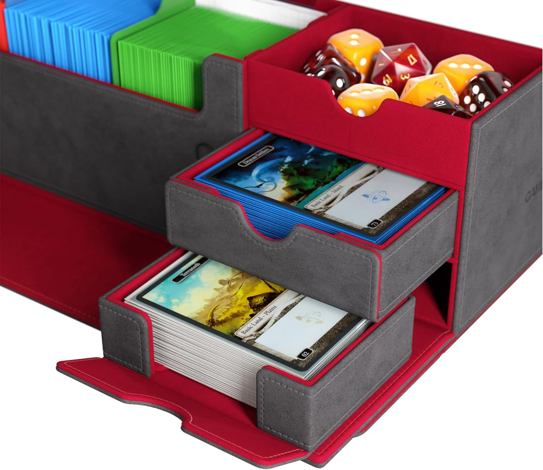 • Hochwertige multifunktionale Aufbewahrungslösung für Karten, Kartenspielboxen und Zubehör und Extra Slot für bis zu 2 Spielmatten die als zusätzlicher Kartenstauraum genutzt werden können