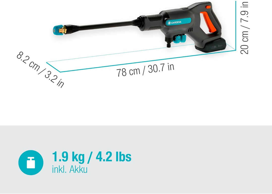 - Allrounder im Garten: Der leichte handgehaltene Akku-Druckreiniger mit ergonomischem Griff ist ideal zum mobilen und schnellen Reinigen hartnäckiger Verschmutzungen