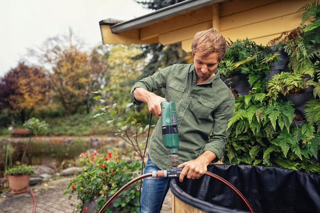 - Lieferumfang beinhaltet: 1x Gardena Bohrmaschinenpumpe mit zwei Anschlussstücken