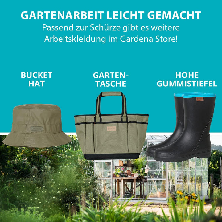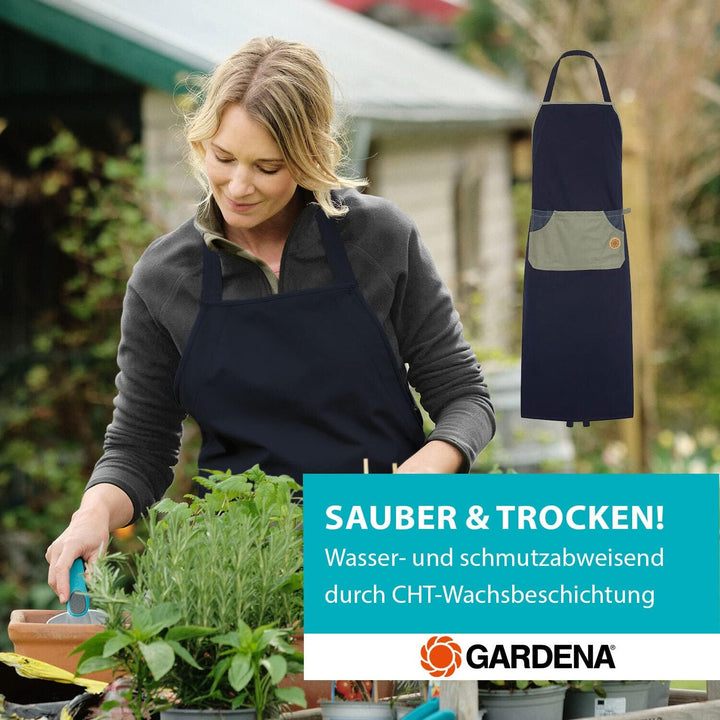 - WETTERFEST: Durch die spezielle CHT-Beschichtung ist die Arbeitsschürze wasser- und schmutzabweisend. Die Gartenschürze ergänzt sich zudem ideal mit anderen smarten Accessoires von Gardena – Entdecke unser vielfältiges Sortiment!