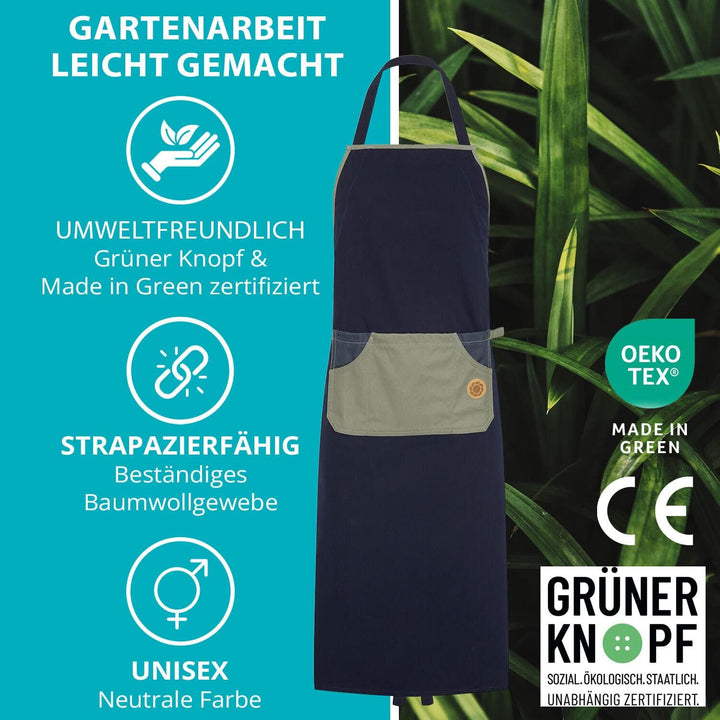 - ZERTIFIZIERT NACHHALTIG: Bei der Herstellung legen wir Wert auf ein umweltfreundliches Verfahren. Deswegen ist die Gardening-Schürze aus 100% umweltfreundlichem & strapazierfähigem Panama-Canvas (Baumwolle).
