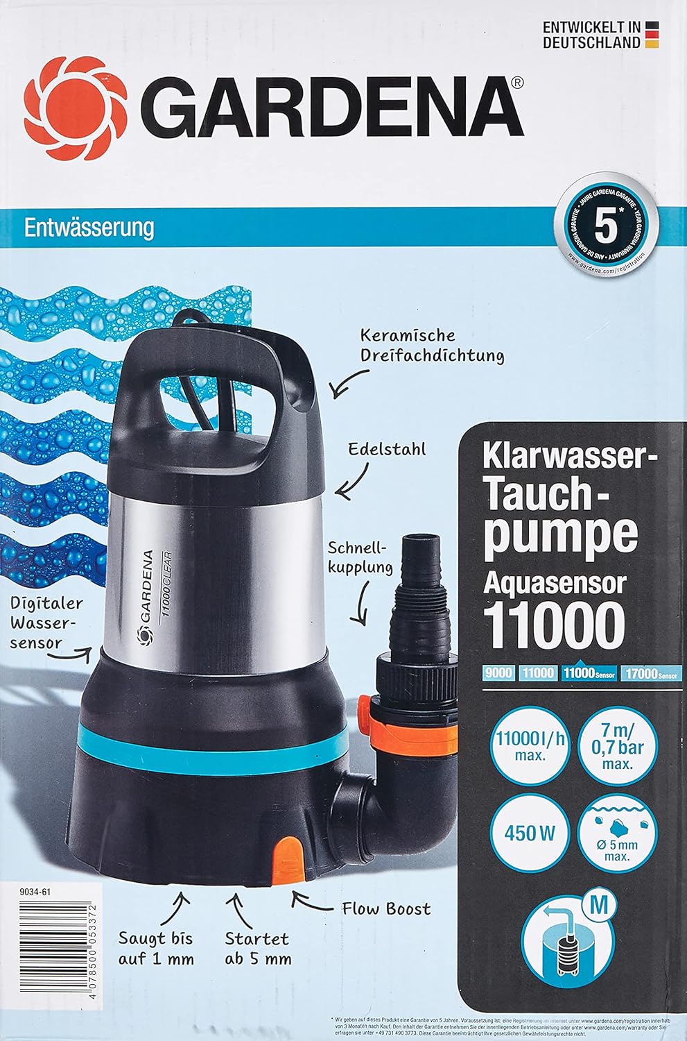 - Gardena Klarwasser Tauchpumpe 11000 Aquasensor 450 Watt