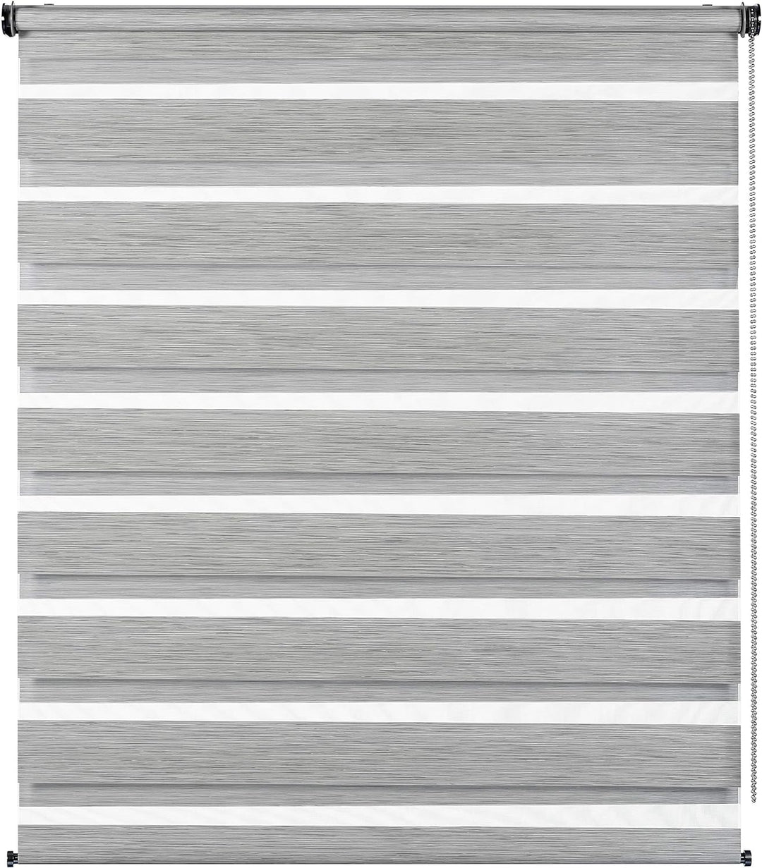 - Praktisches Doppelrollo für alle gängigen Fenster, Stufenloses Verstellen mittels Kettenzug, Individuell regulierbares Raumlicht durch abwechselnd transparente und blickdichte Streifen