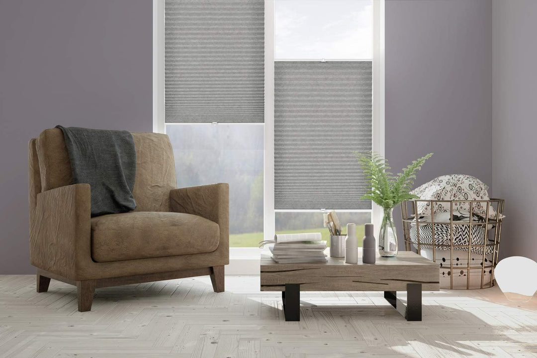 - Stilvolles und nachhaltiges Plissee mit Stoff aus Recyclingmaterial für alle gängigen Fenster mit Gummidichtung, Lichtdurchlässiger, aber blickdichter Sicht- und Sonnenschutz, Montage ohne Bohren und Schrauben