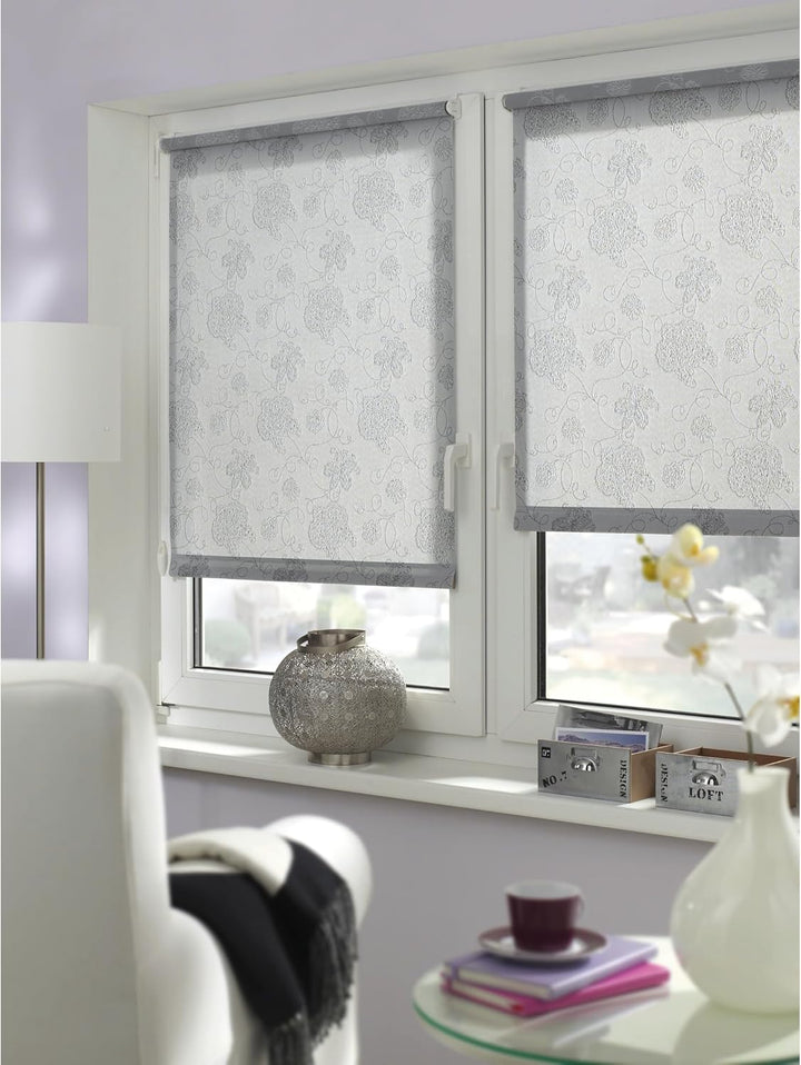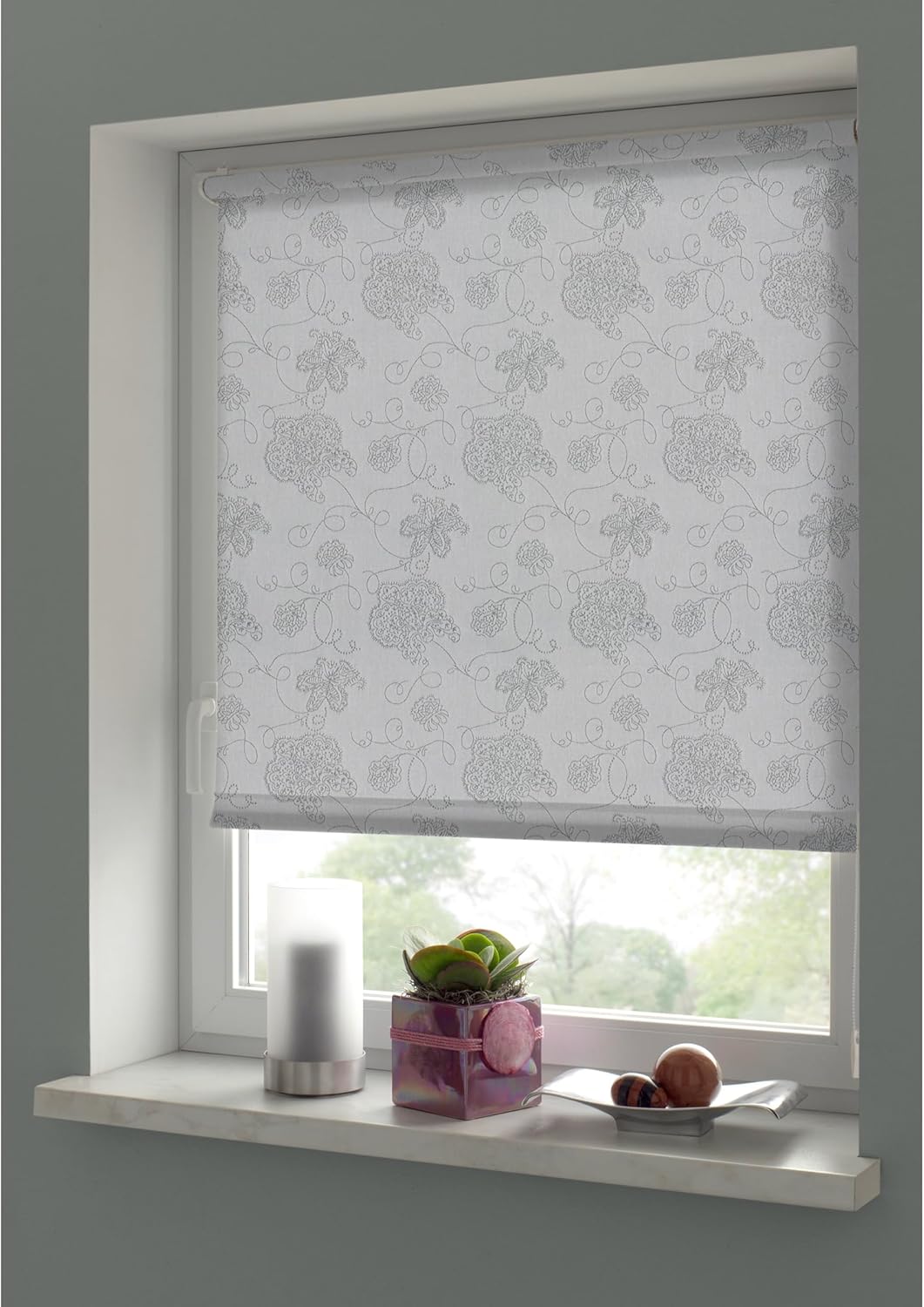 - Lieferumfang: 1 x GARDINIA Easyfix Rollo Dekor zum Klemmen oder Kleben, Stickerei, Alle Montage-Teile inklusive, Silber, 100% Polyester, 75 x 150 cm, Stoffbreite: 72 cm, Rollobreite: 75 cm