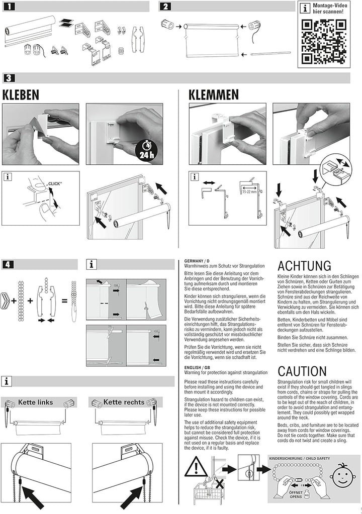 - Fixierung mit Klemmträgern: Einfacher Zusammenbau der Einzelteile, Befestigung des Rollos am oberen Fensterflügel durch Aufstecken von zwei Klemmträgern, Geeignet für Fensterflügel von 15 bis 22 mm Dicke