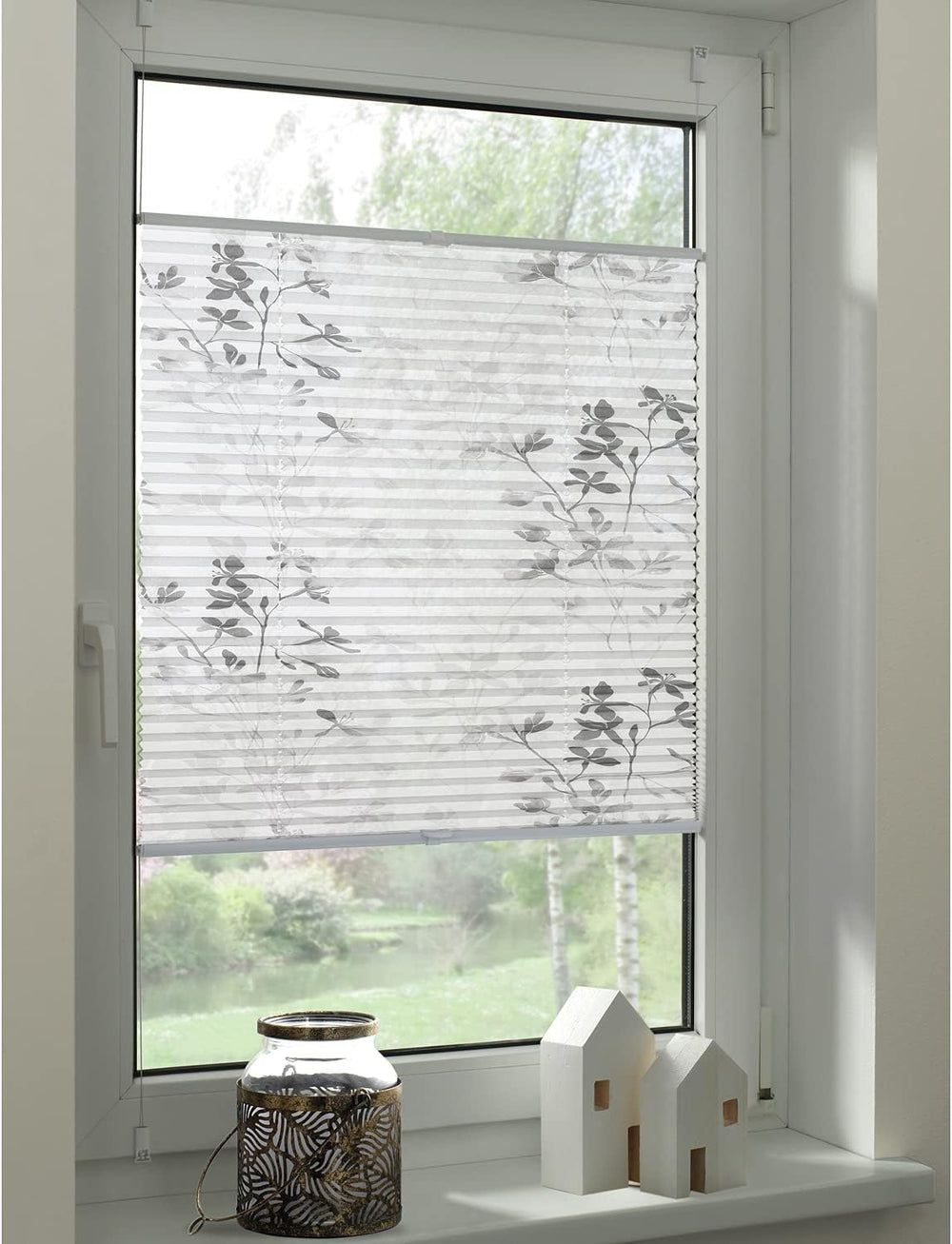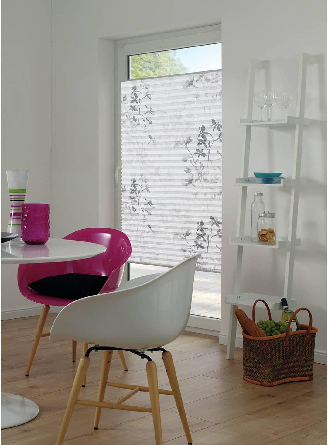 - Lieferumfang: 1 x GARDINIA Plissee Bella, Blätter-Druck, Montage-Teile inklusive, Farbe: Weiss, Stoff: 100% Polyester, 80 x 210 cm, Art.Nr.: 23-2187