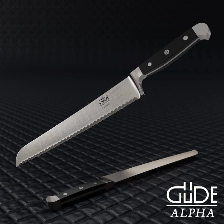 - Die Alpha Serie bietet die grösste Modellvielfalt der Marke GÜDE aus Solingen. Der unverwechselbare Doppelkropf ist das Markenzeichen der GÜDE Serie. Der feinpolierte schwarze Griff besteht aus robustem Hostaform und ist sehr pflegeleicht