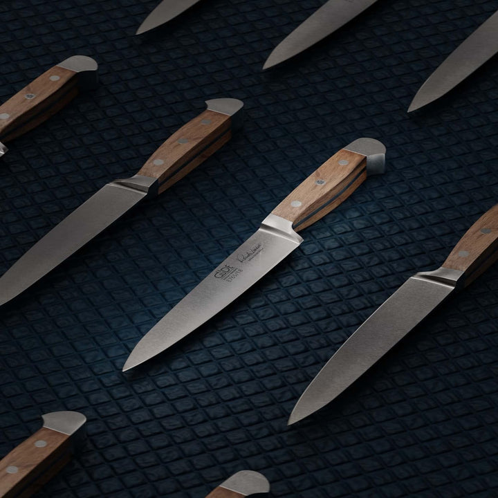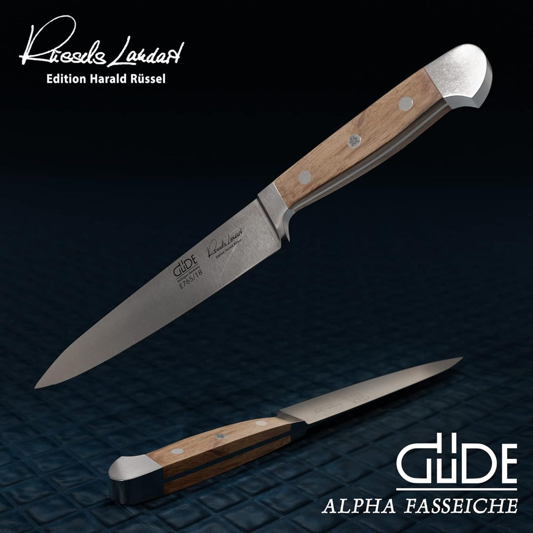 - Die professionellen GÜDE Werkzeuge für die Küche, werden traditionell und in über 40 manuellen Handarbeitsschritten gefertigt. Nach Handabzug der Klinge, bietet das Messer eine extreme Schärfe und ideale Schneideigenschaften. Handmade aus Solingen