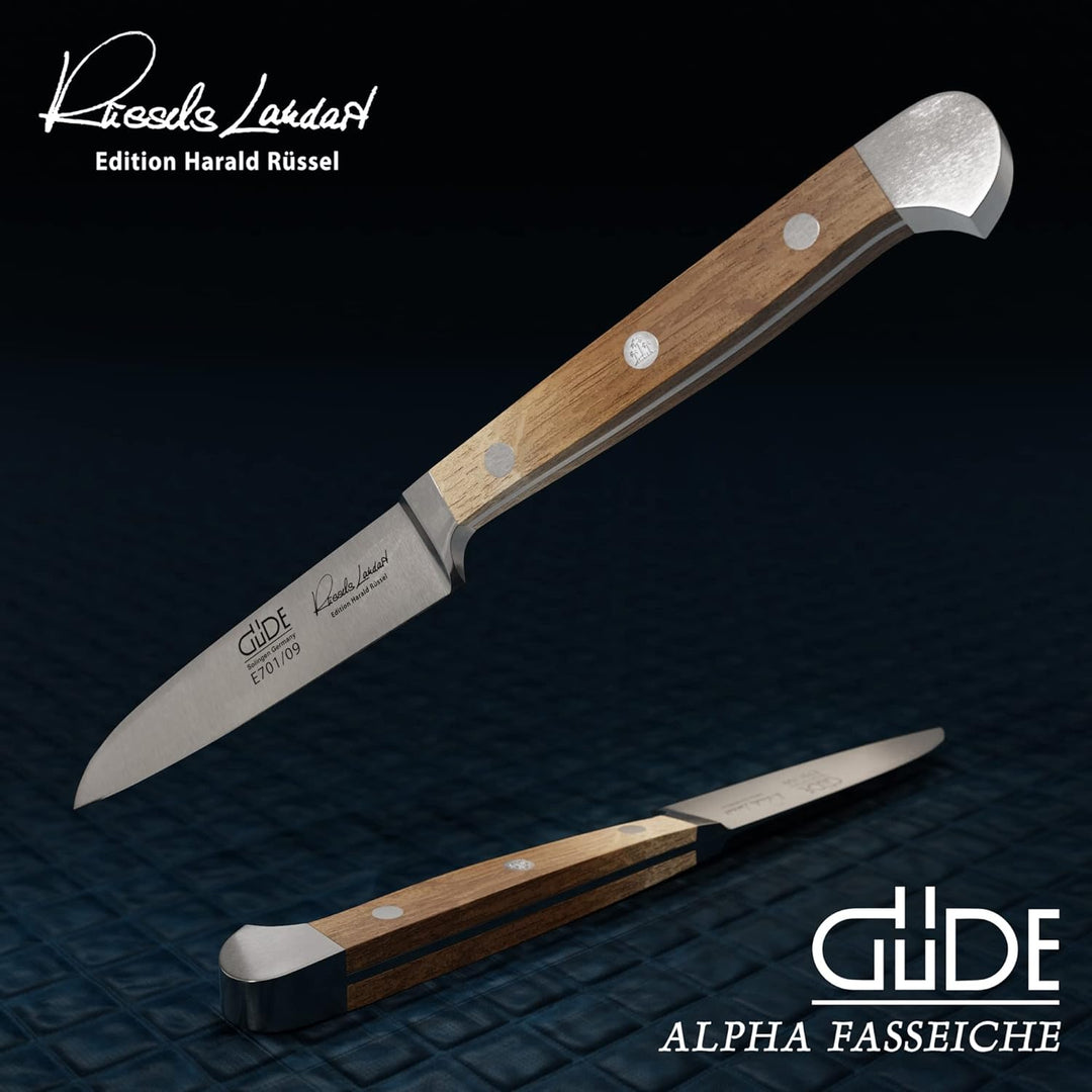 - Die professionellen GÜDE Werkzeuge für die Küche, werden traditionell und in über 40 manuellen Handarbeitsschritten gefertigt. Nach Handabzug der Klinge, bietet das Messer eine extreme Schärfe und ideale Schneideigenschaften. Handmade aus Solingen