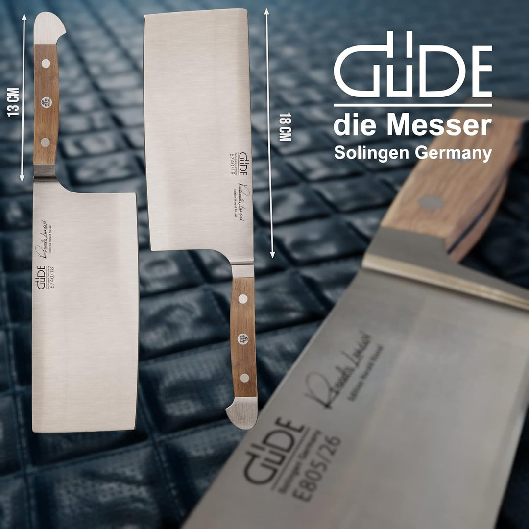 - Das Hackmesser von GÜDE ist für grobe Stücke bestens geeignet. Kleine Knochen, Knorbel, Kräuter, Gemüse und vieles mehr sind für das Küchenbeil kein Problem. Schneiden, hacken, zerteilen, klopfen, plätten sind selbstverständlich für das Profi