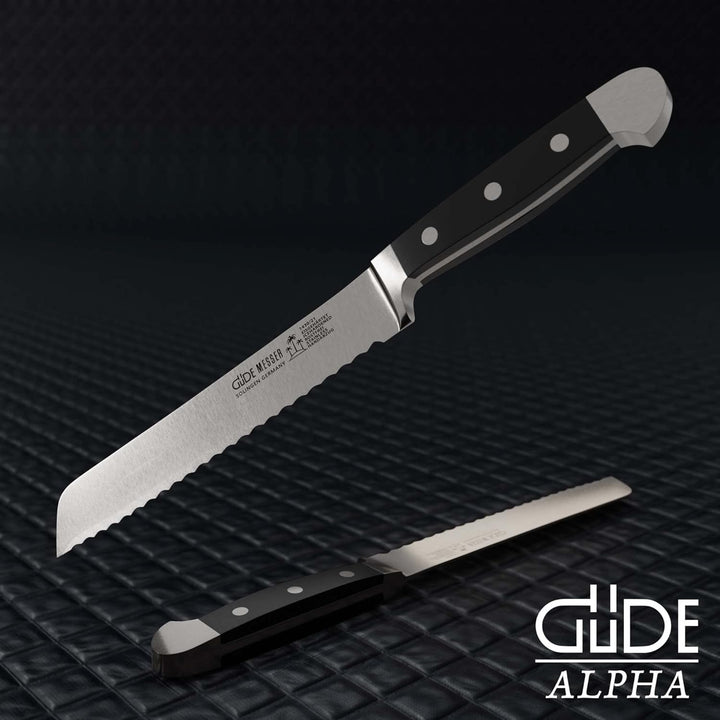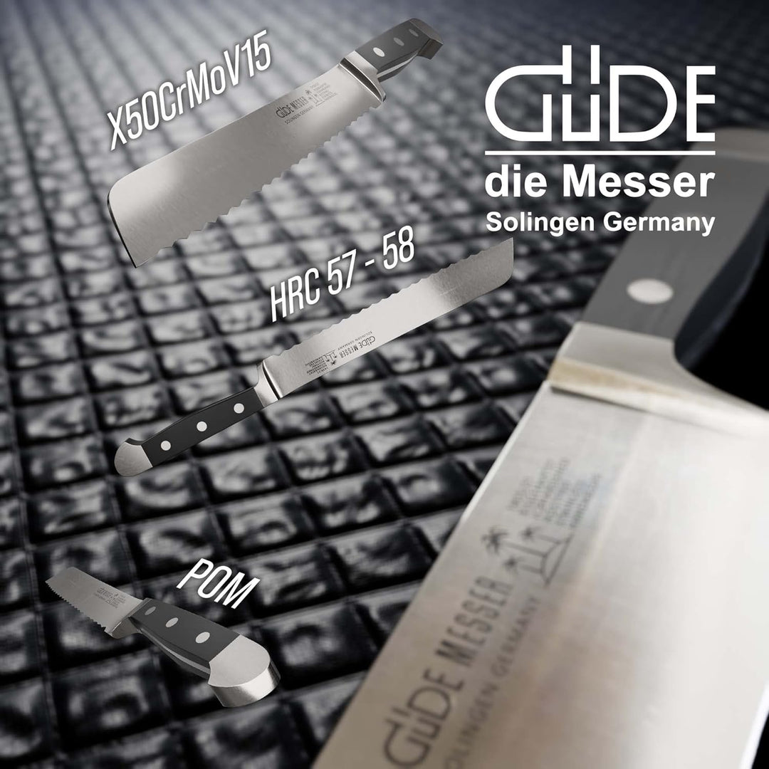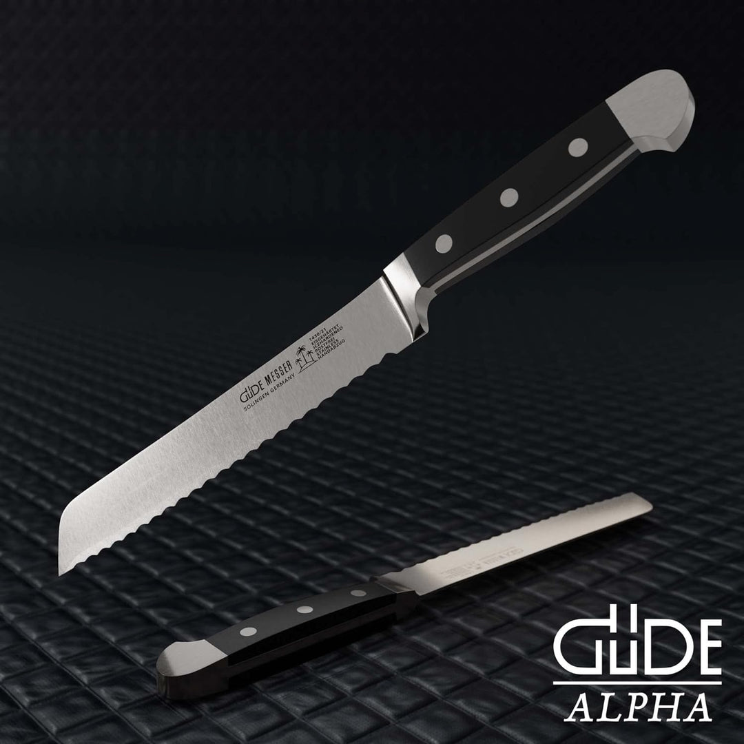 - Die Alpha Serie bietet die grösste Modellvielfalt der Marke GÜDE aus Solingen. Der unverwechselbare Doppelkropf ist das Markenzeichen der GÜDE Serie. Der feinpolierte schwarze Griff besteht aus robustem Hostaform und ist sehr pflegeleicht