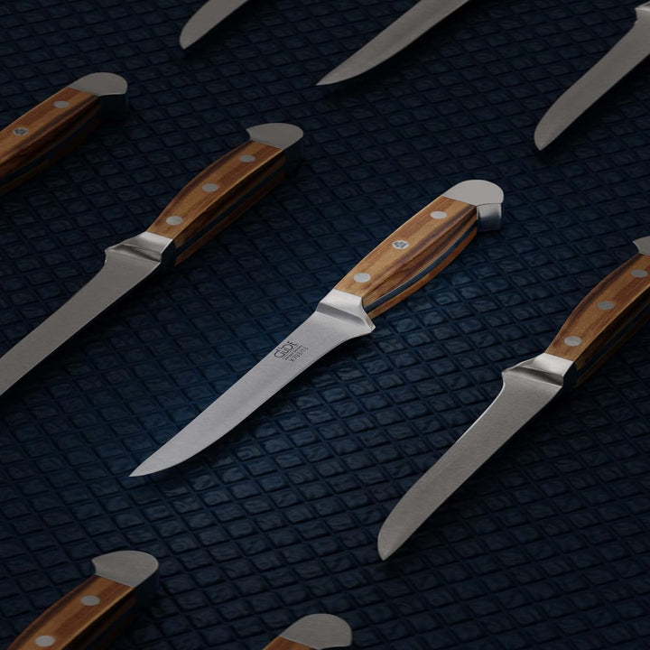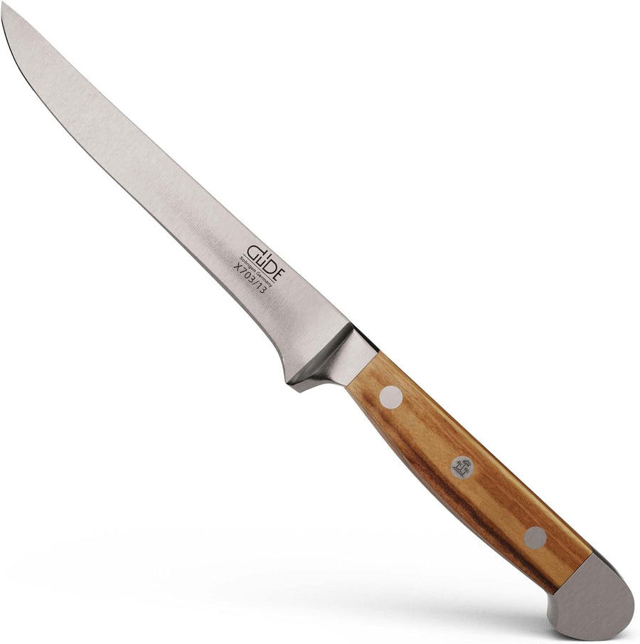 GÜDE Solingen - Ausbeinmesser flexibel geschmiedet, 13 cm, Olivenholz, ALPHA OLIVE, Doppelkropf, Han