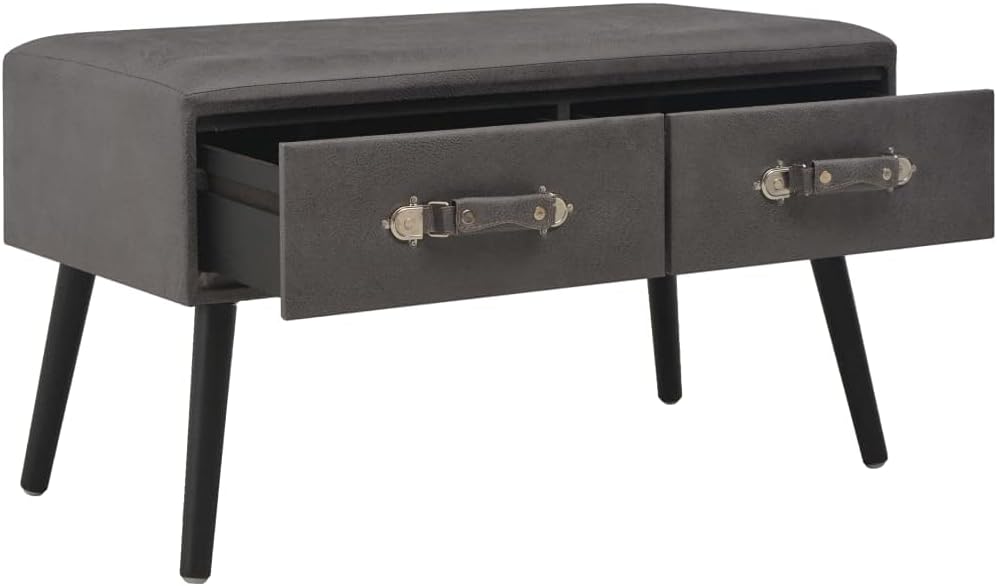 - Farbe: Grau Material: Kunstleder + massives Kiefernholz Abmessungen: 80 x 40 x 46 cm (B x T x H)