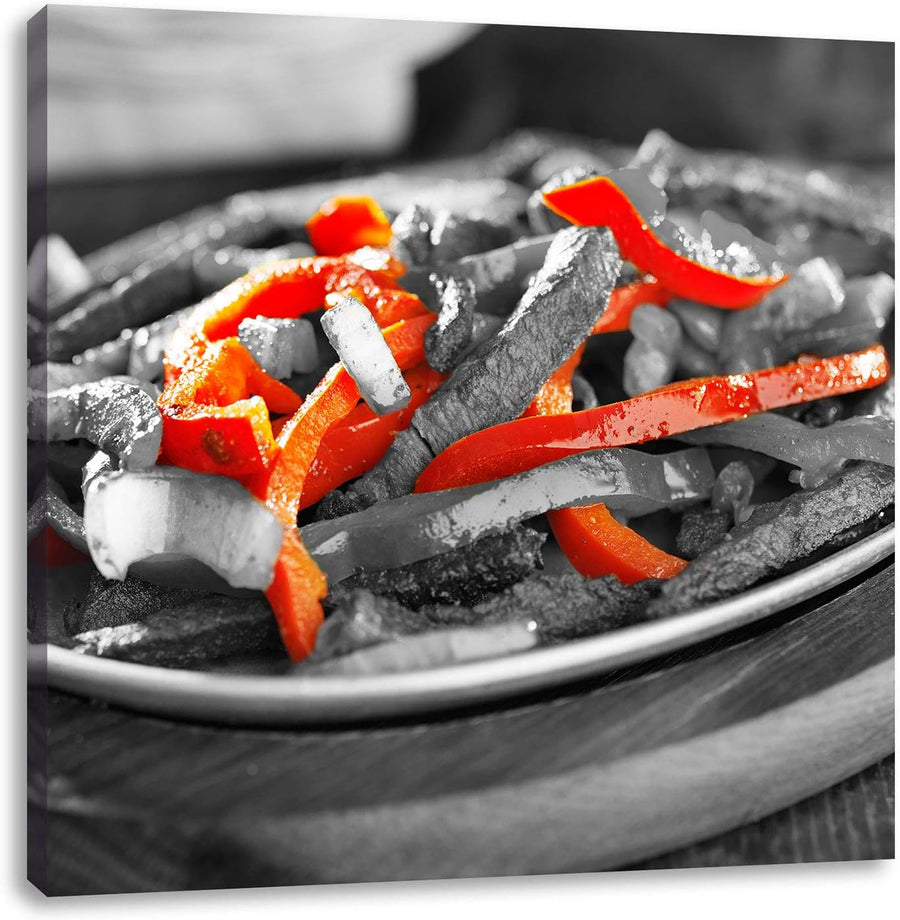 Gegarte Fleischpfanne mit Paprika als Leinwandbild Quadratisch| Grösse: 70x70 | Wandbild| Kunstdruck