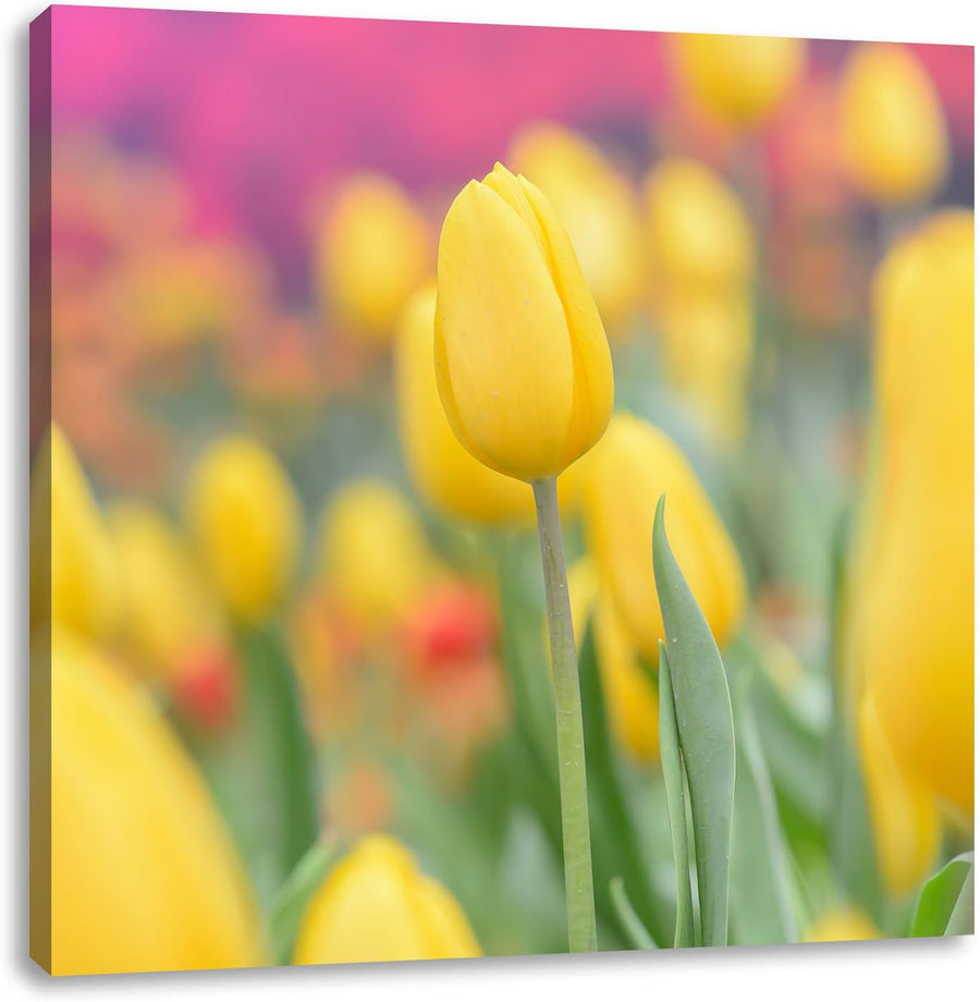 Gelbe Tulpen im Frühling, Format: 70x70 auf Leinwand, XXL riesige Bilder fertig gerahmt mit Keilrahm