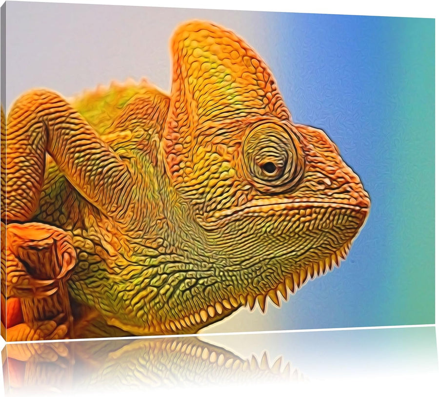 gelbes Chamäleon Deluxe Format: 100x70 cm auf Leinwand, XXL riesige Bilder fertig gerahmt mit Keilra