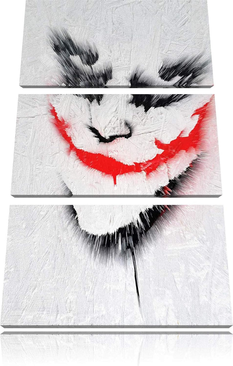 gemaltes Joker Gesicht auf Spanplatte schwarz/weiss 3-Teiler Leinwandbild 120x80 Bild auf Leinwand,