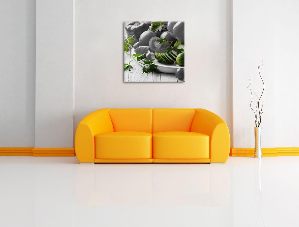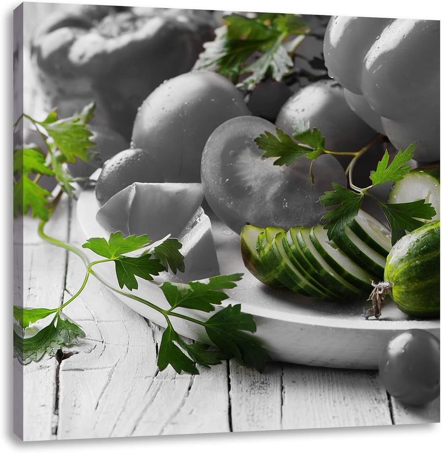 Gemüseteller mit Paprika Tomate und Zucchini schwarz/weiss, Format: 70x70 als Leinwandbild, tolle Bi