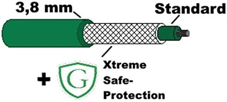- Kabelstärke (mit extra beständiger Isolierung 3,4mm + Drahtgeflecht + Ummantellung): 3,8mm