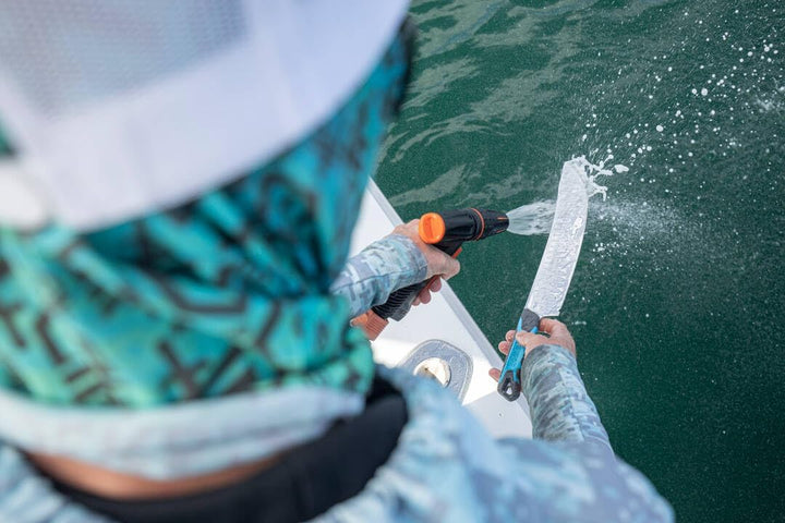 - Messerscheide mit Ablaufschlitzen, Klinge mit SALTRx-Technologie für hervorragenden Schutz gegen Salzwasser, Korrosion und Verschleiss