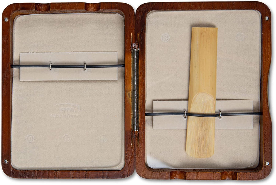 - Für 6 Tenorsaxophonblätter bis zu 9 cm Länge