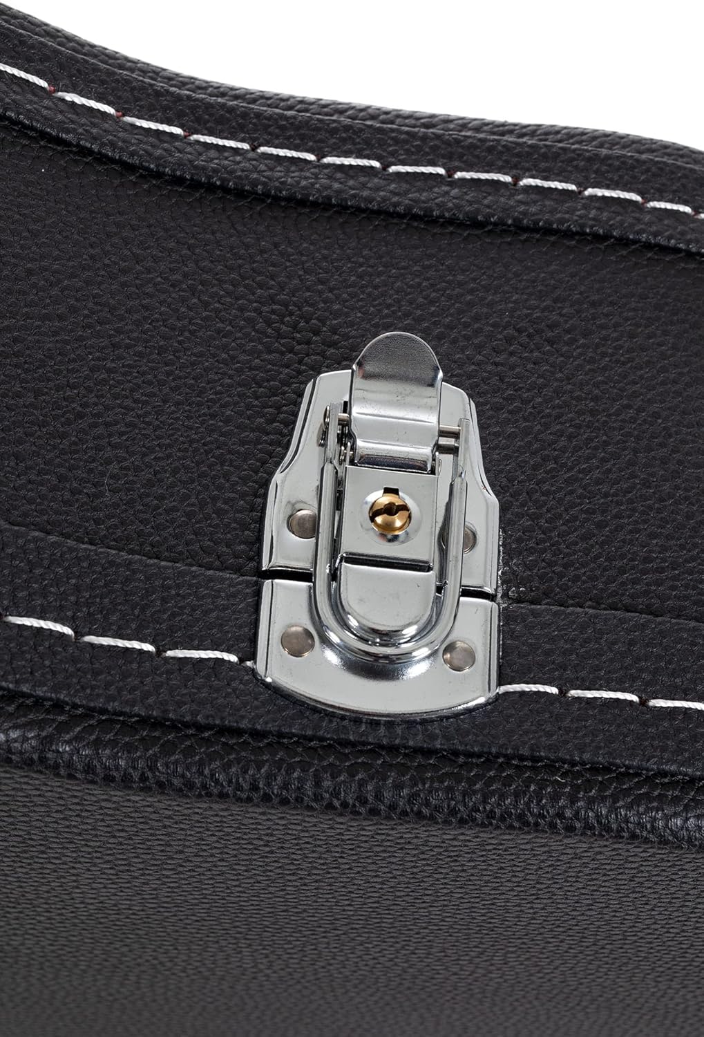 - Stabiler Kunststoff-Griff, Mattschwarzer, genarbter Kunstlederbezug, Zubehörfach mit Deckel