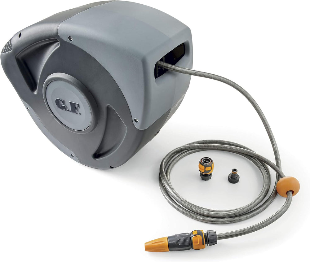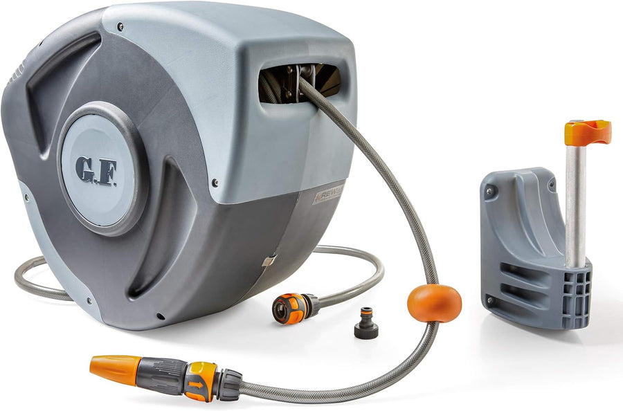 - An der Wand befeistigt, kann man den Schlauch mühelos und bequem automatisch wieder aufrollen.