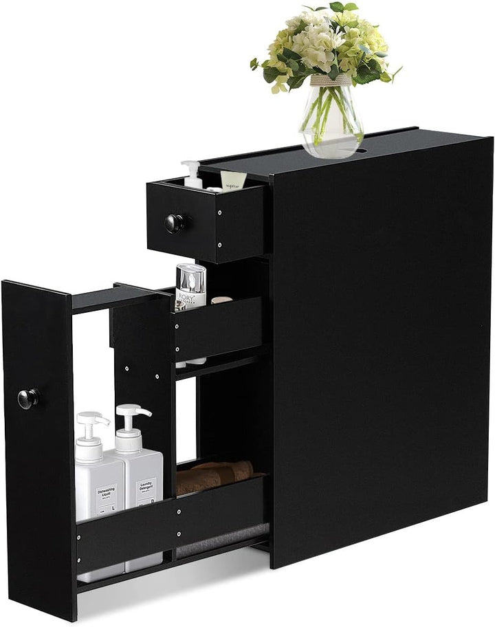 - 💖 Viel Stauraum - An der Oberseite des Badschrankes befindet sich ein zu öffnenden Behälter. Zudem hat dieser Seitenschrank noch 2 Schubladen, und zwar ist die untere Schublade in 3 Parts unterteilt, die verschiedene Waschmittel je nach Bedarf