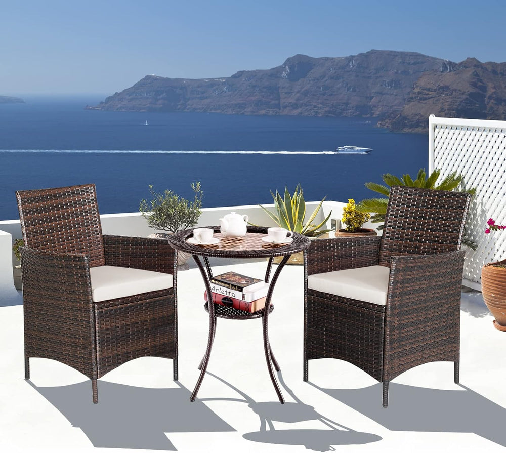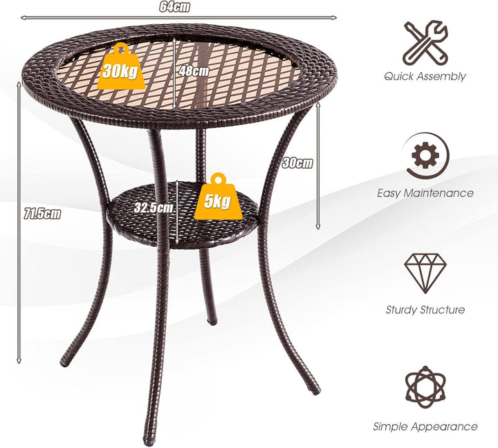 - Lange Nutzungsdauer - Getragen vom pulverbeschichteten Metallgestell kann dieser Gartentisch über Jahre hinweg stabil stehen. Geflochten aus mehrfach verstrebtem Polyrattan ist der Balkontisch äusserst widerstandsfähig gegen schlechtes Wetter sowie