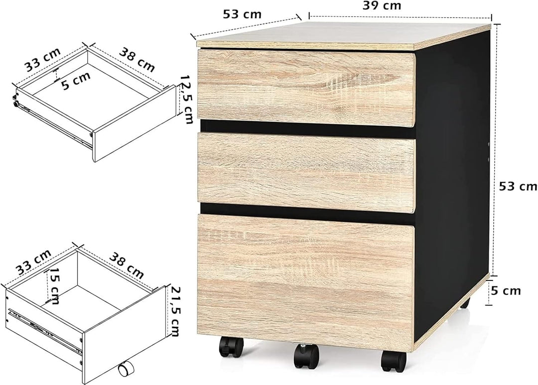 - 💖 Grosser Stauraum - Der Rollcontainer verfügt über 2 kleine Schubladen und eine grosse Schublade, sodass Sie genügend Stauraum für Ihre Dokumente oder Büromaterialien haben. Die Grösse von 39 x 53 x 58 cm ermöglicht es, alles ordentlich in der