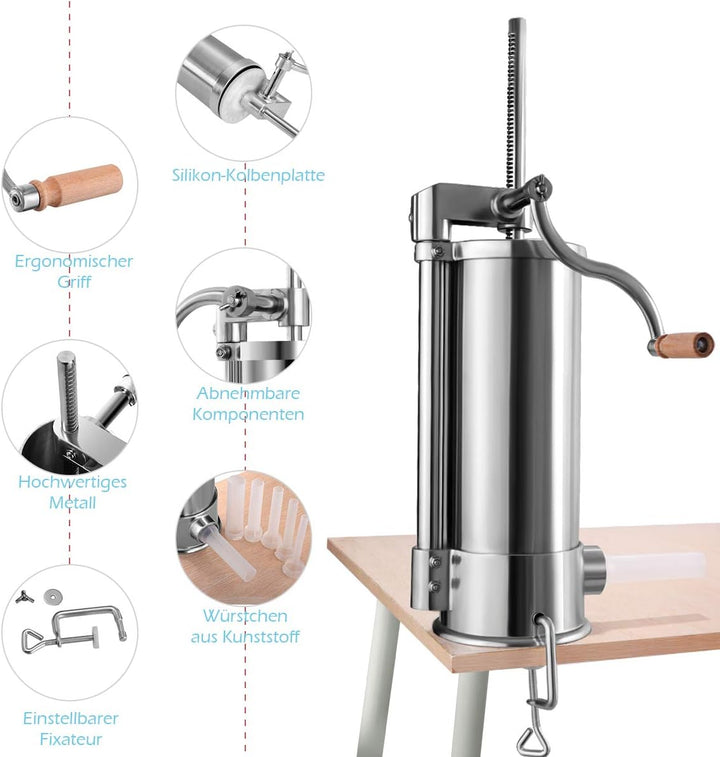 GIANTEX Wurstfüller 1,5L/3L/3,6L/6L, Manuelle Wurstmaschine Wurstfüllmaschine, Wurstspritze aus Edel