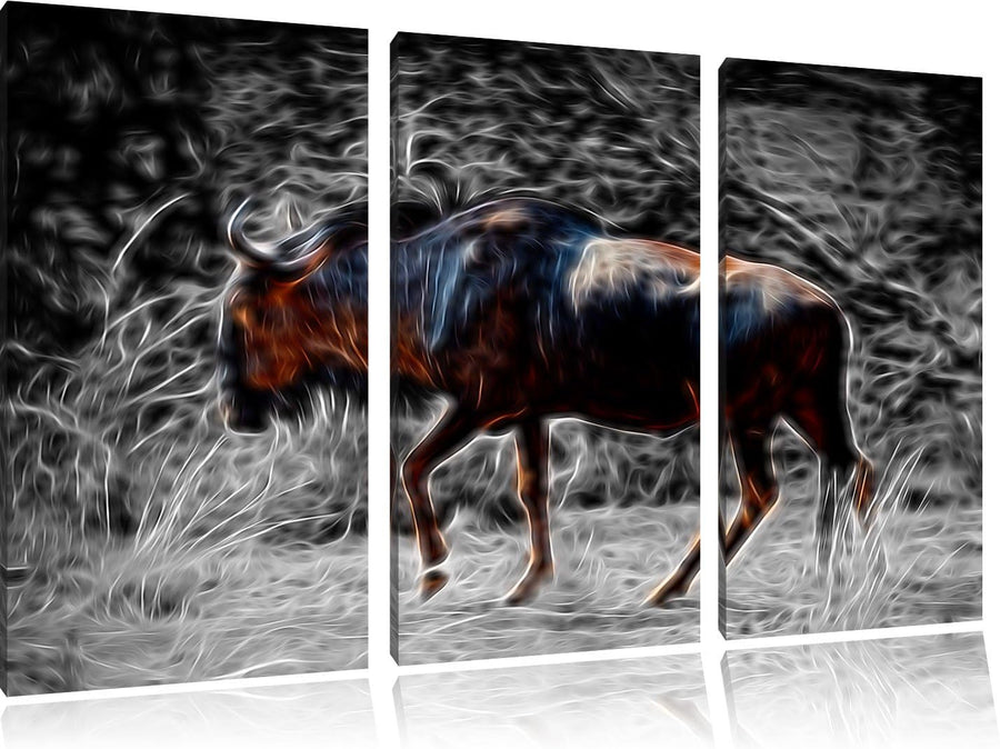 gigantische Kaffernbüffel in der Savanne schwarz/weiss Deluxe 3-Teiler Leinwandbild 120x80 Bild auf