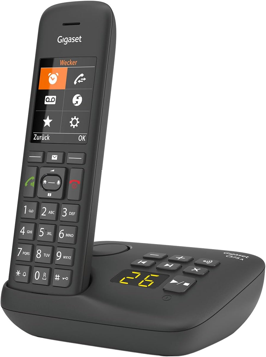 - LIEFERUMFANG - 1x Gigaset C575A Basisstation, 1x Gigaset C575 Mobilteil, 1x Steckernetzteil Basisstation, 1x Telefonanschlusskabel, 2x AAA-Akkus (NiMH), 1x Bedienungsanleitung