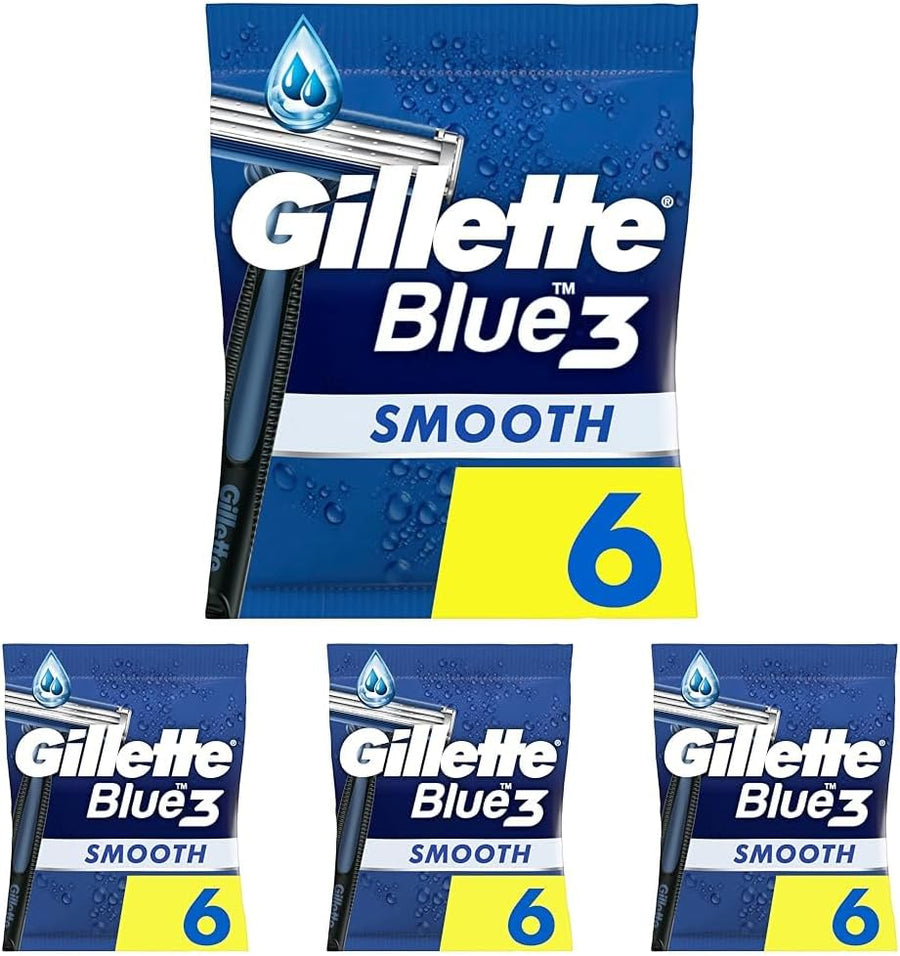 Gillette Blue3 Smooth Einwegrasierer Männer, 6 Rasierer mit 3-fach Klinge, um 40° beweglicher Schwen