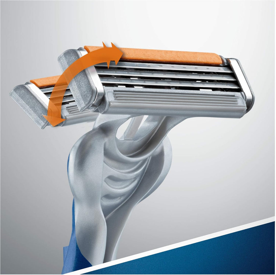 • 3 federnd gelagerte Sensor Klingen auf einem beweglichen Klingenkopf passen sich für eine geschmeidige Rasur den Konturen deiner Haut an