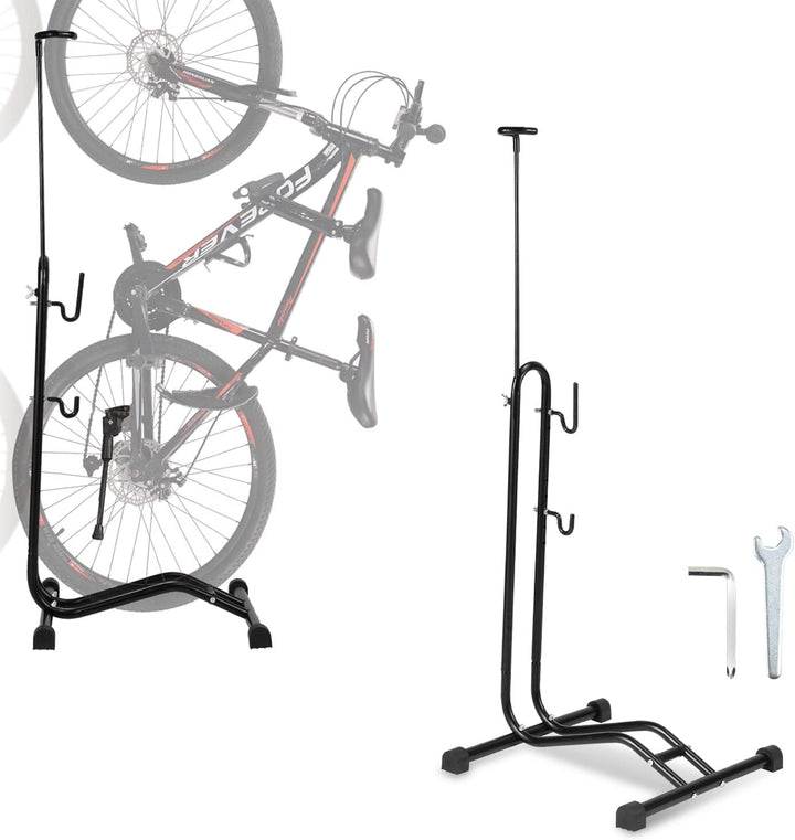 - 🚴♂️【Sicherer Stand】Durch die höhenverstellbaren (76 bis 124 cm) Haltebügel bietet der Ständer einen festen Halt. Schaffen Sie stilvoll und schnell Platz in Ihrer Garage, dem Hobbyraum oder Keller.