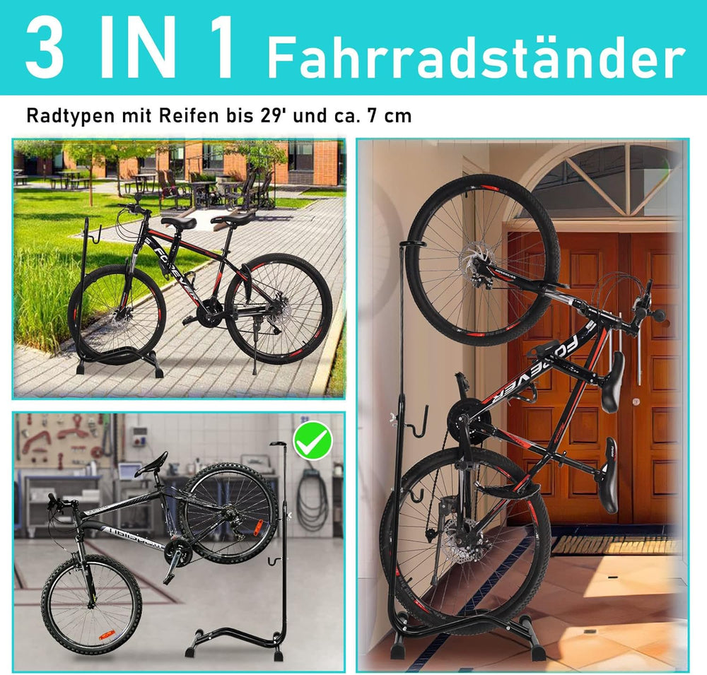 - 🚴♂️【Platzsparend】Fahrrad ständer heim ist sehr praktisch, nicht nur geeignet zum Einstecken des Vorder- oder Hinterrads, sondern kann auch Ihr Fahrradständer vertikal oder horizontal aufbewahren, um Ihre Lagerbedürfnisse zu erfüllen.