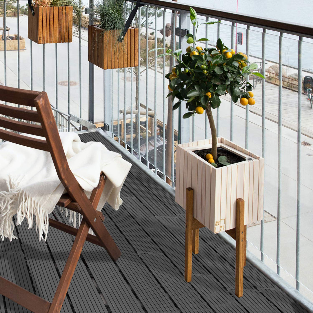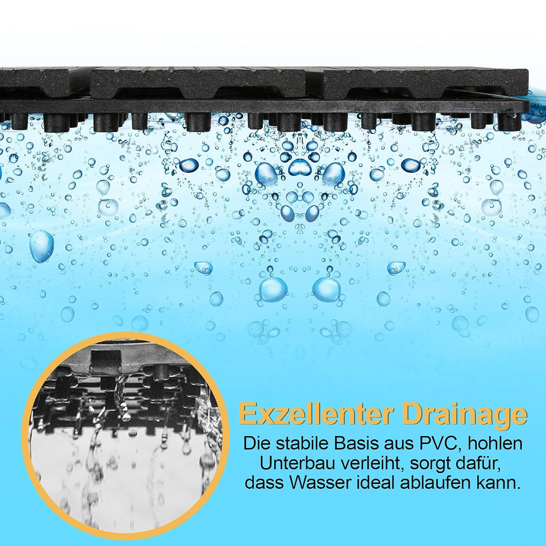 - đ´ăStarke HaltbarkeităWPC-Fliesen bestehen aus hochwertigen Holz-Kunststoff-Verbundwerkstoffen, so dass die Fliesen wasserabweisend und äusserst haltbar sind.Das Material ist witterungs- und UV-beständig und bleibt auch ohne Behandlung mit Lacken