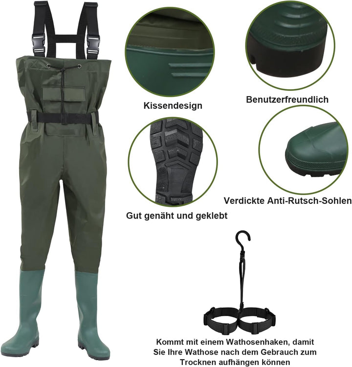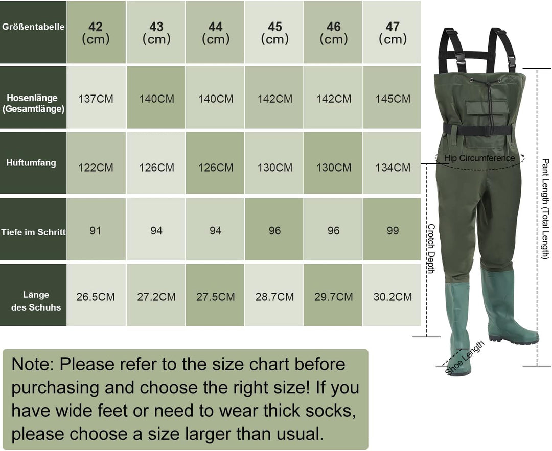 • 【Vielseitig verwendbar】Unsere Wathosen sind geeignet für: Angeln, Jagen, Landwirtschaft, Bergbau, Autowäsche, Teicharbeiten oder Gartenarbeit und jede Tätigkeit an nassen Orten.