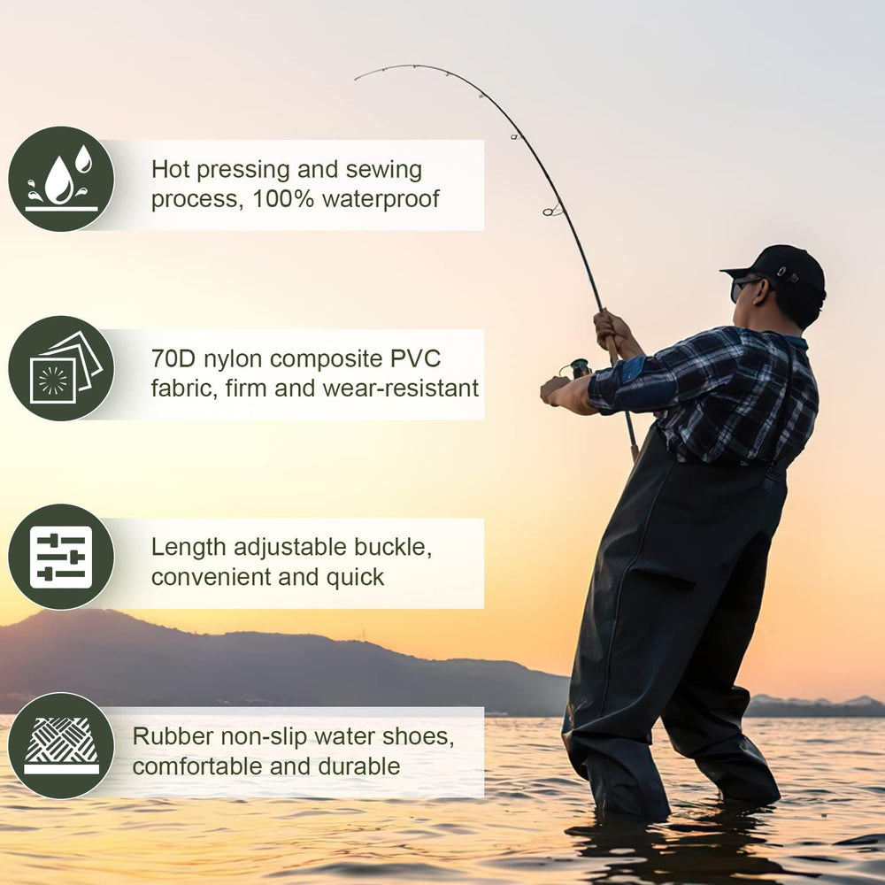 • 【High Quality Wathose】Unsere Wathosen sind aus hochwertigem Stoff gefertigt: 70D Nylon Composite PVC-Gewebe, fest und tragbar. Gummi Anti-Rutsch-Wasserschuhe, bequem und langlebig. Heiss gepresst und genäht, 100% wasserdicht.